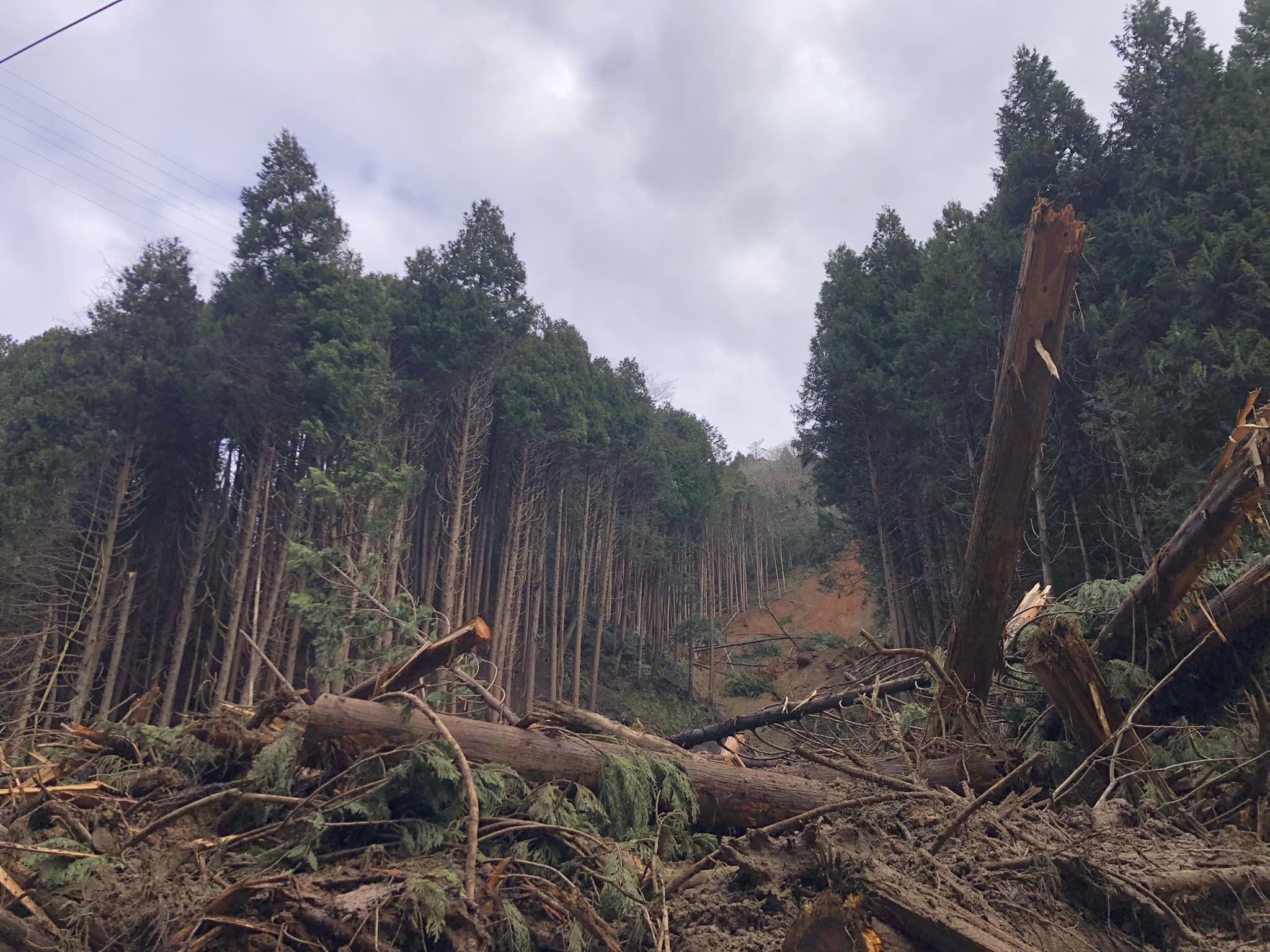 発災から2ヶ月経っても、主要道路以外はこんな現場がたくさんあります。そして私たちが生業としている林業の現場はその先にあります。